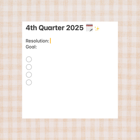 Honestly, Iâve been feeling stuck, discouraged, and unmotivated since moving. Starting over can be a fresh start with the right perspective. But Iâve become aimless somewhat as I navigate the newness of life in a new place. Most days Iâm just focused on whatâs right in front of meâ grocery shopping, trying to fit in a home workout, and trying to enjoy moments throughout the day with my son. I do believe my family matters most and also because itâs all the capacity I have for in this season. But I do miss dreaming and planning creative projects⌠I decided to look at my Notes app where I have all my goals for 2025. As we begin a new month and the last quarter of the year, itâs not too late for joy and growth. Iâm praying Godâs helps me see life as a glass half full rather than half empty, especially when life can feel heavy or hard!